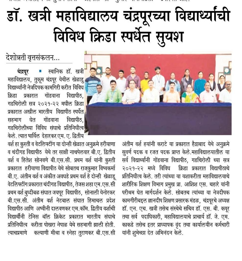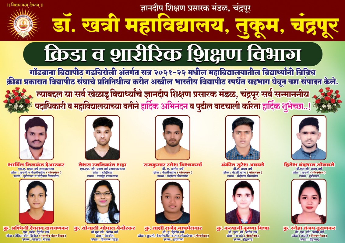 Recognized by Govt. of Maharashtra and Affiliated to Gondwana University, Gadchiroli. Accredited by NAAC Bangalore